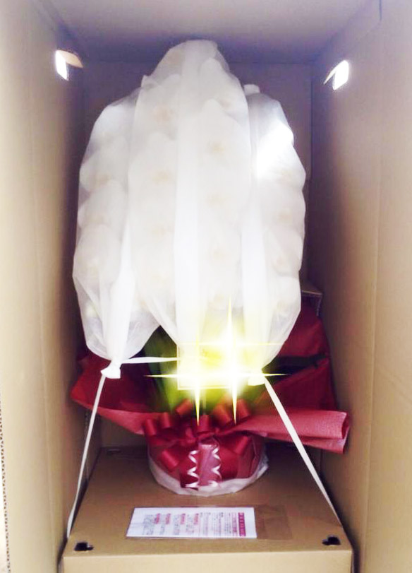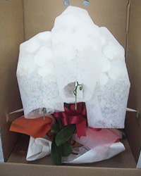 冬季のお届は防寒対策を施し、美しい胡蝶蘭を最良の状態でお届けするように心がけています。